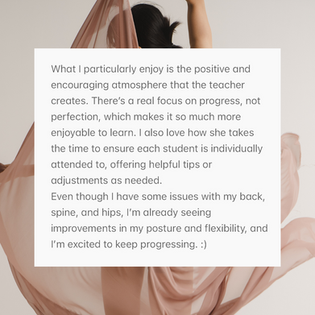 Ayumi's ballet classes are an absolute must to join to experience the beauty of ballet with easy instructions, classical music, and beautiful movements. The classes are easy to follow and bring inspiration to know that it is possible to practice ballet professionally at all ages. Ayumi's kind and positive attitude creates a cozy atmosphere to practice ballet.